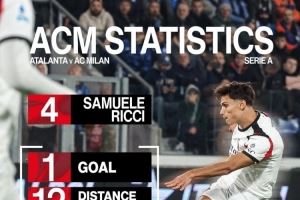 米兰官方社媒晒出里奇本场比赛的数据,他出场97分钟打进1球,跑动距离12公里,传球成功率97%,完成4次解围。